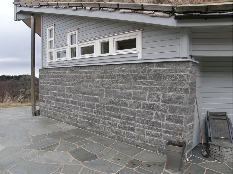 Stein som er spalta ned til 6 – 10 cm. tjukne må monterast med fuger. Stein med tjukne 10 – 15 cm. kan murast tørt med bakstøyp eller fugast.